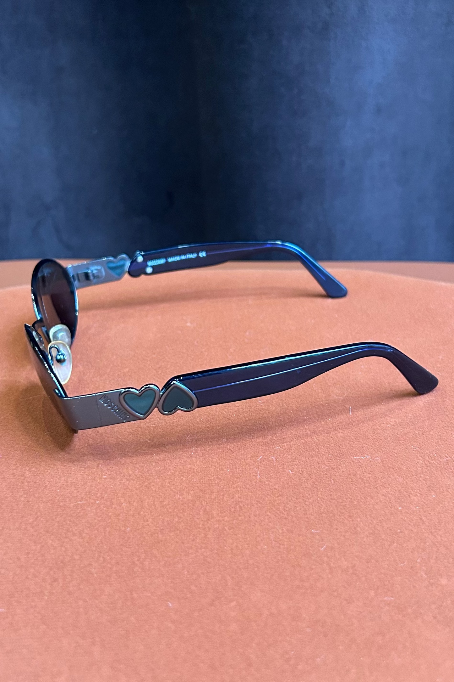Vintage Moschino Black Oval Sunglasses with Heart Detail
