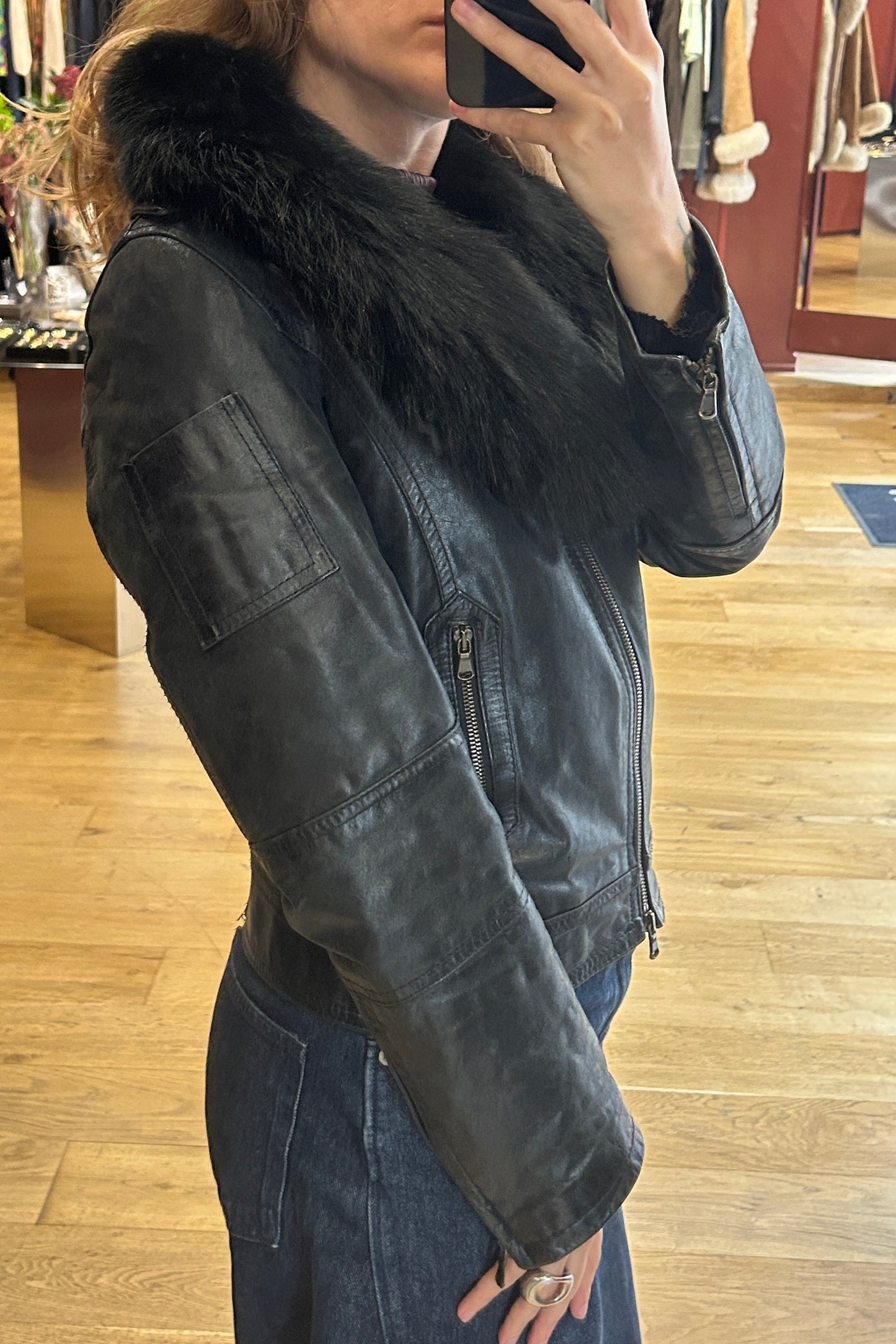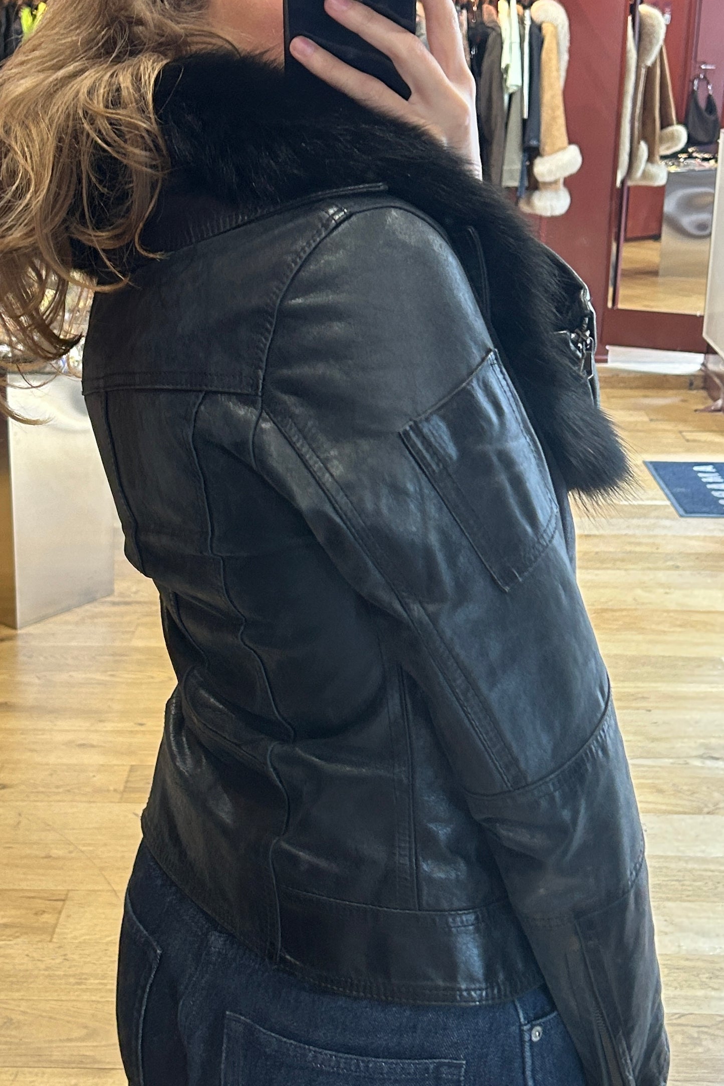 Italian Black Leather Jacket with Removable Fur Collar