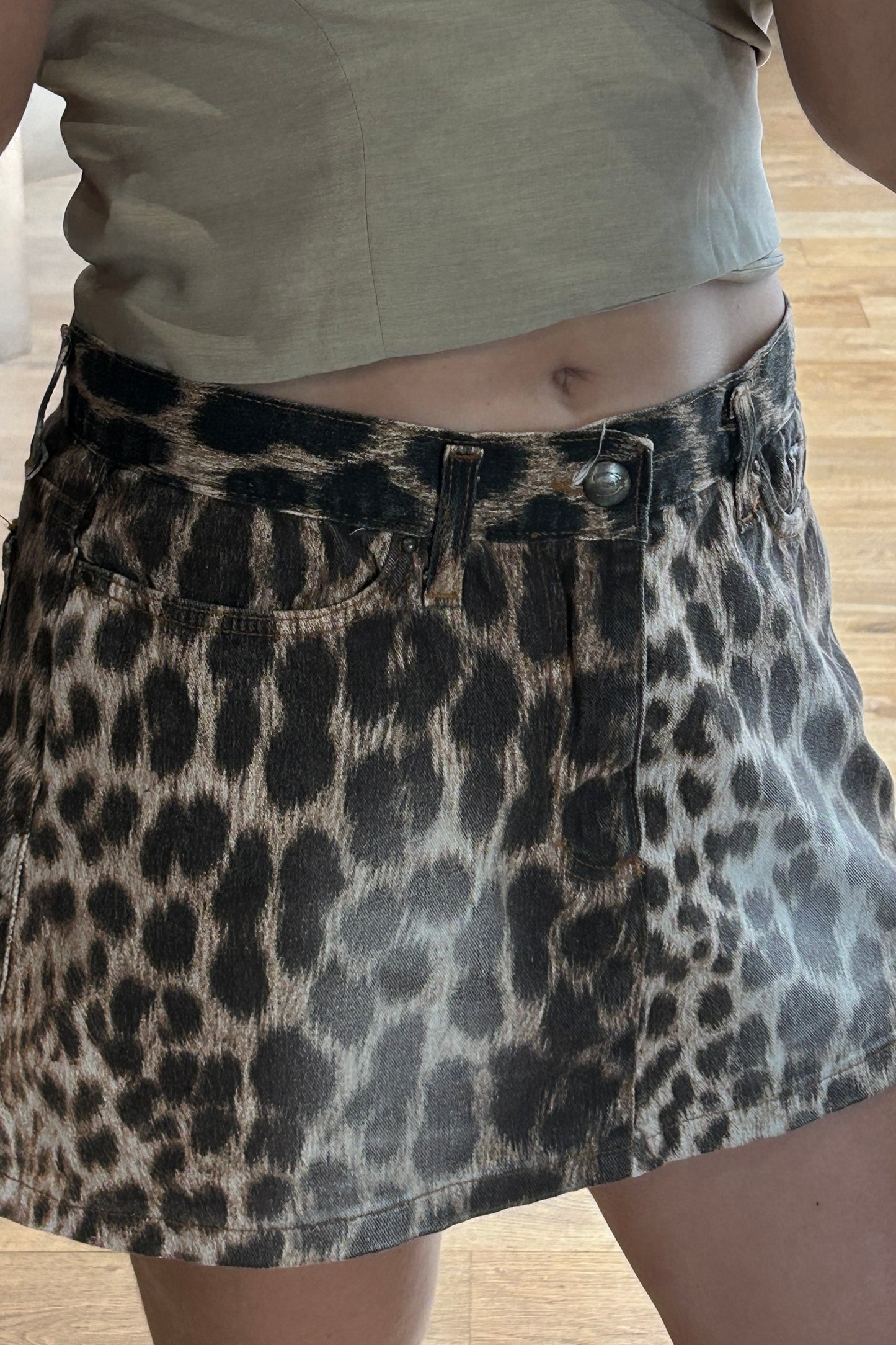 Designed in a brown leopard print, it features a mini length that enhances its confident and feminine silhouette. A true Y2K statement piece, perfect for standout looks.
