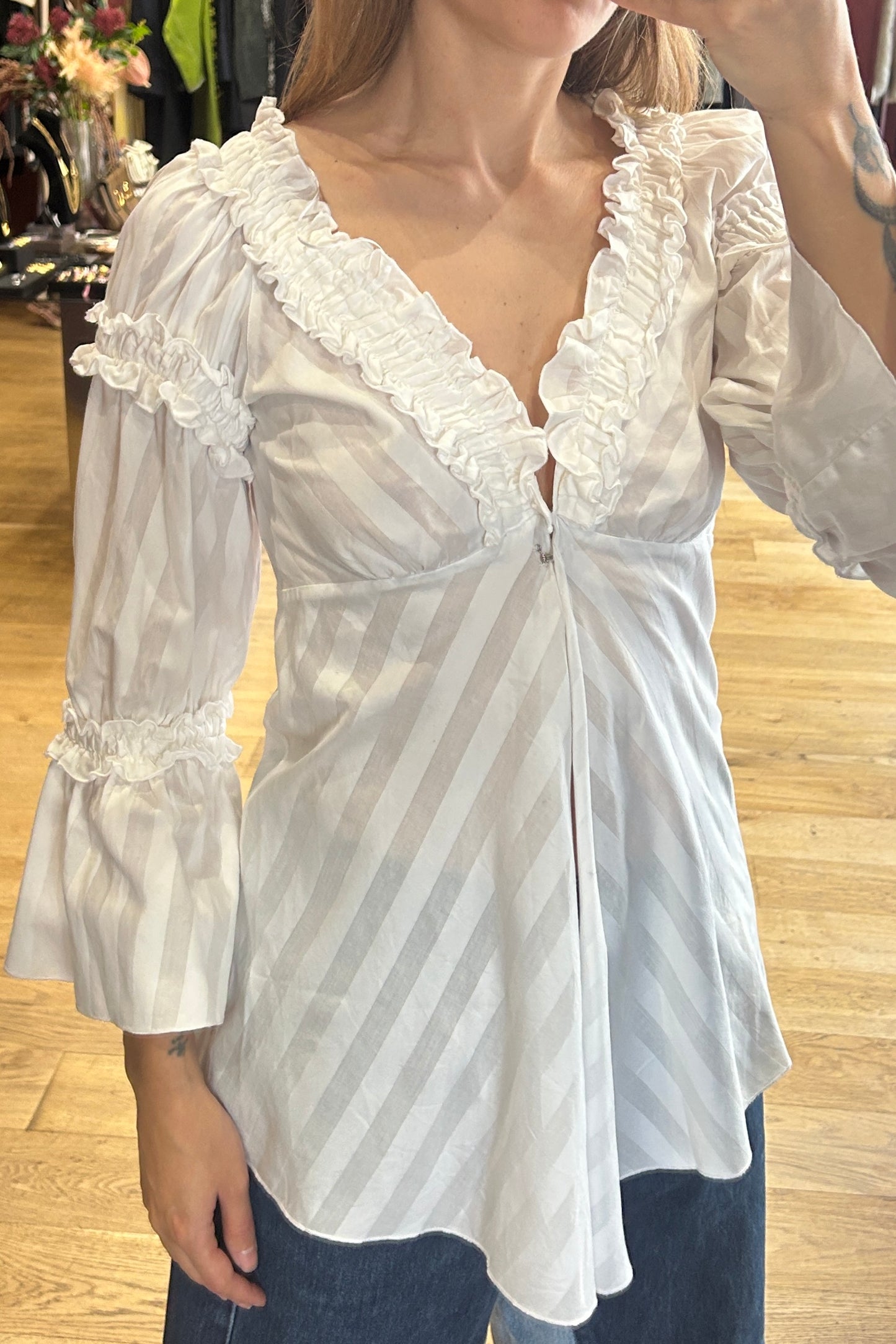 Anne Fontaine Cotton Ruffled Shirt