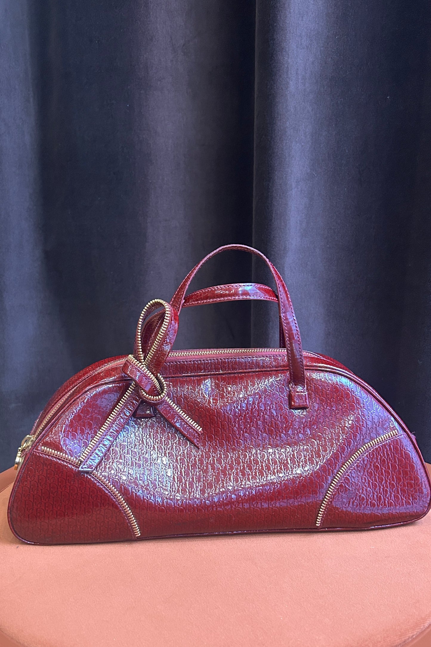 Christian Dior Burgundy Patent Leather Handle Bag with Gold-Tone Closure