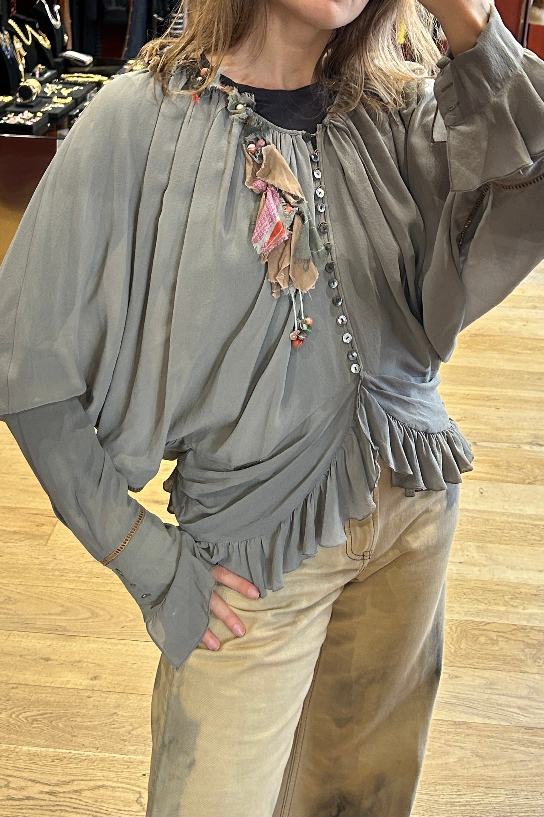 Vintage John Galliano Silk Bohemian Blouse in Grey