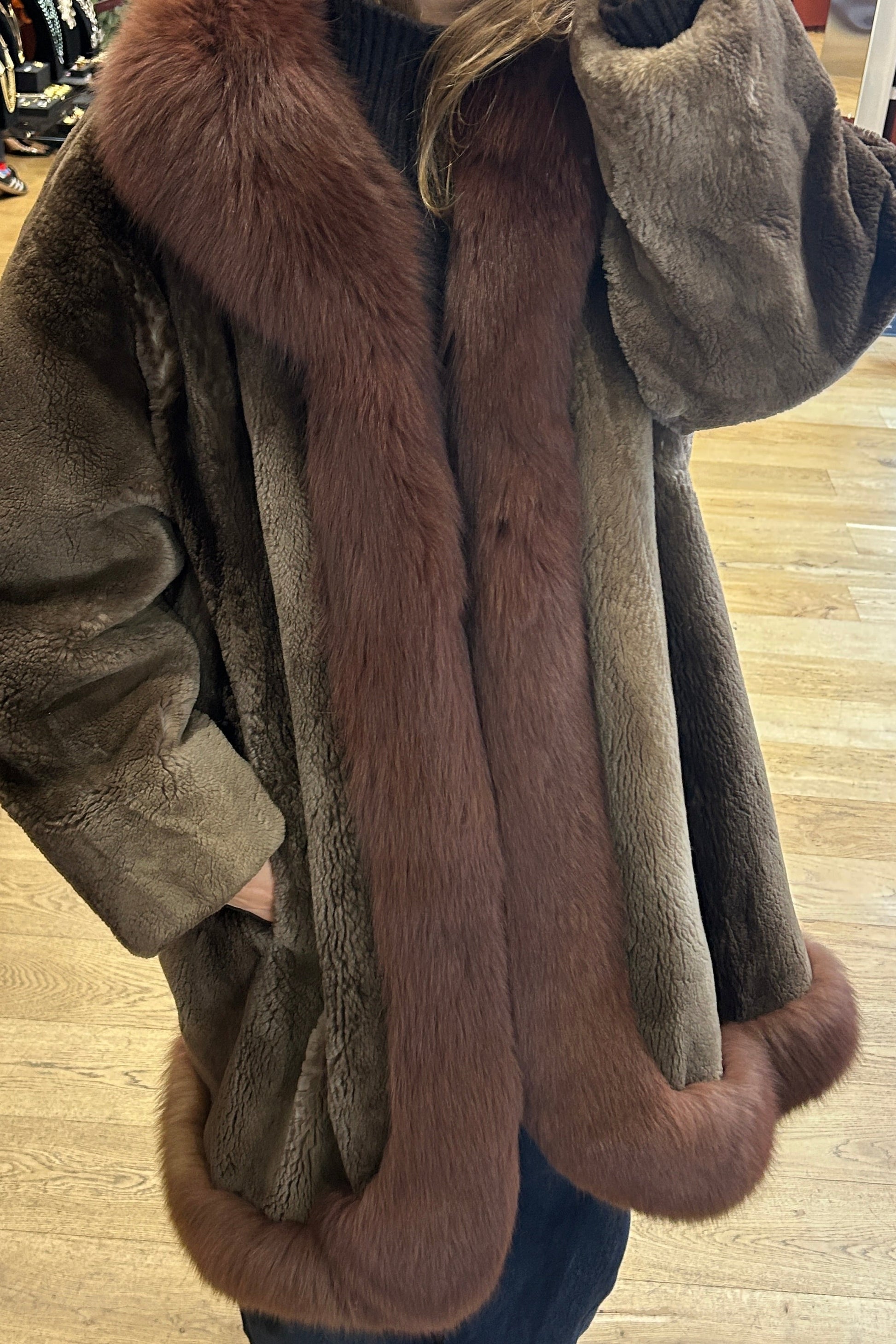 Vintage Christian Dior Fur Coat by Frédéric Castet – Green Shearling & Brown Fox Fur