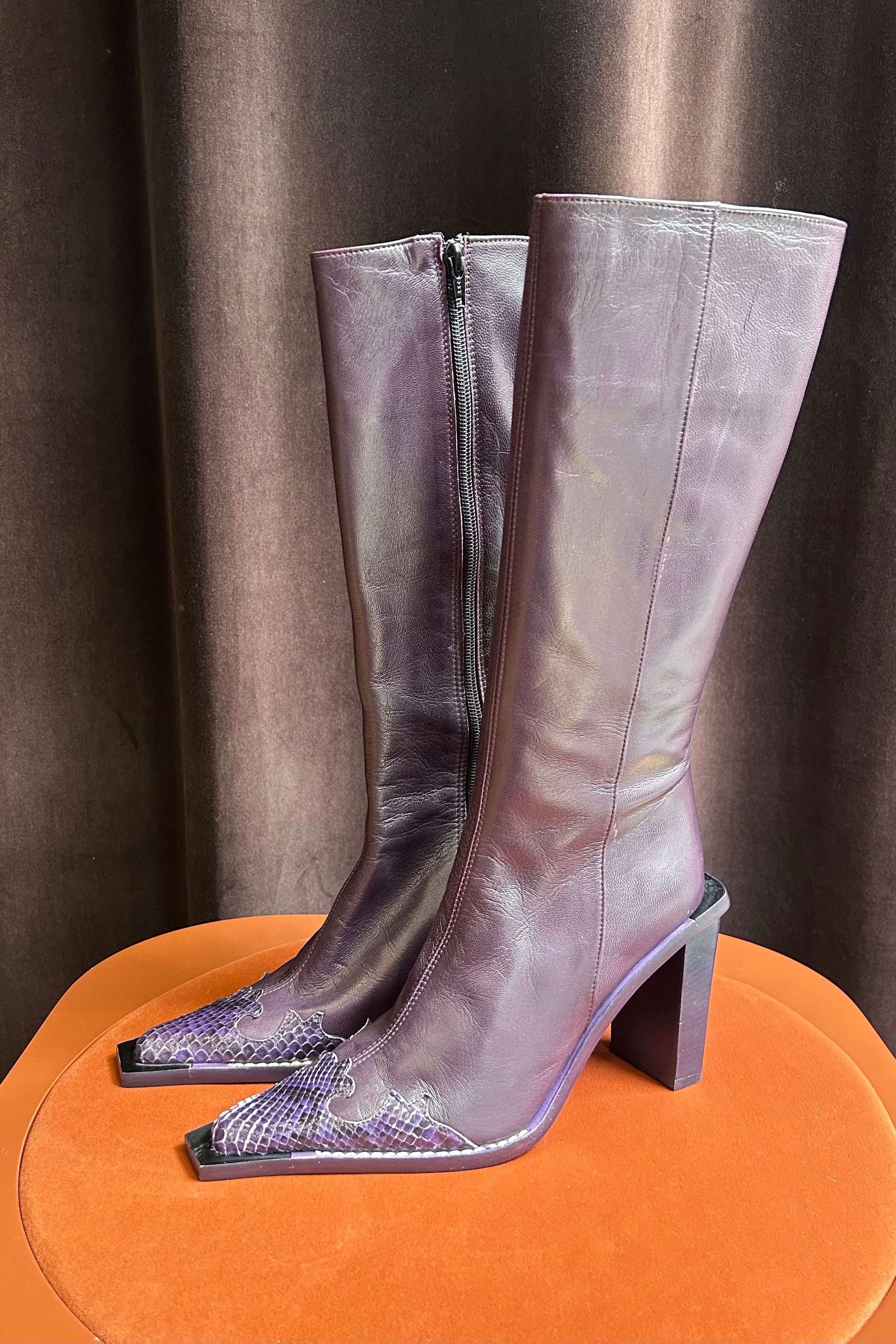 Vintage Purple Italian Leather & Python Toe Boots – EU 37 / US 6.5
